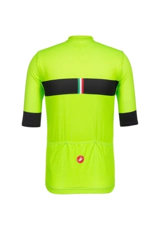 Fahrradtrikot aus leichtem, elastischem Gewebe: schmaler Stehkragen; durchgehender YKK® Frontreißverschluss; kurze Ärmel; 3 Stecktaschen auf der Rückseite; elastischer Saum mit verlängertem Rückenteil und Silikonbeschichtung; Ärmel und Seiten aus atmungsaktivem Mesh; schnelltrocknend; enge Passform; Material 92% Polyester, 8% Elastan.