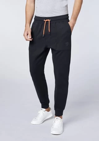 Jogginghose für Herren von der Marke Chiemsee. Einfarbige Hose mit elastischen Gummibund und kontrastfarbigen Zugband. Zwei Taschen auf der Vorderseite und eine Gesäßtasche. Bündchen am den Beinabschluss. Angenehmer Tragekomfort dank Baumwollmischung.