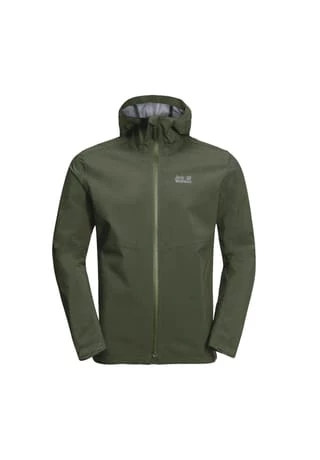 Herren-Regenjacke JWP Shell – Jack Wolfskin Für Berg und Tal die beste Wahl, ist das Jack Wolfskin JWP Shell für Herren! Hier bekommt ihr die technische Wetterjacke in modernem Olivgrün mit Logoapplikationen, die euch zum Leuchten bringen. Naja, zumindest verschaffen sie eine gute Sichtbarkeit in schlechten Lichtverhältnissen. Die Regenjacke schützt dank technischer Texapore-Membran vor nassen Wassergüssen und ungemütlichen Winden, wobei sie an kühlen Schlechtwettertagen am besten mit einer zusätzlich wärmenden Unterschicht kombiniert wird. An lauen Sommertagen hingegen, kann sie durch das weiche Mesh-Innenfutter direkt auf der Haut getragen werden. Das wasserdichte Material bietet mit einer 15K-Atmungsaktivität einen exzellenten Luftaustausch im Inneren, bei dem überschüssige Wärme nach Außen transportiert wird und ungewollte Schweißausbrüche die dem Körper Energie kosten, minimiert werden. Desweiteren tragen praktische Details wie eine verstellbare Kapuze, Außen- und Innentaschen, regulierbare Abschlüsse und ein ergonomisch abgerundeter Rückenbereich zum hohen Tragekomfort der Wetterjacke bei. Produktdetails Herren-Wettermantel Einsatz: Hiking, Wandern, Reisen, Freizeit, Alltag leicht,weich, geringes Packmaß, schnelltrocknend feste Formkapuze mit Volumen-Verstellbarkeit hoher Kragen mit Fleece-Kinnschutz zentraler Frontreißverschluss wasserresistente Reißverschlüsse verstellbare, ergonomisch geformte Ärmelbündchen verstellbarer Saum mit leicht-verlängerten, abgerundetem Rückenende 2 Fronttaschen mit Reißverschluss und Windschutzblende angenehmes Mesh-Innenfutter interner/externer Aufhänger reflektierende Details Logo-Applikationen Technische Details: Gewicht: 430 Gramm (Größe M) Texapore Ecosphere: wasser-/winddichte, atmungsaktive Schicht zwischen Obermaterial und Futter 2 Materiallagen für absoluten Schutz Wassersäule: 20.000 mm Atmungsaktivität: 15.000 g/m2 Material: 100% Polyester Futter: 100% Polyester