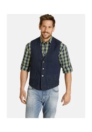 JAN VANDERSTORM ist Ihr Experte für Herrenmode in großen Größen. Ein neuer Klassiker für Ihre Garderobe. Weste Valfrid im neuen Jeansdesign bringt mit seinen vielfältigen Kombinierungsmöglichkeiten neuen Schwung in die Garderobe. Gerade geschnitten, mit zwei Pattentaschen und Knöpfen in Metalloptik, bringt die Weste Abwechslung in den Kleiderschrank. Einfach zu einem weißen Hemd kombinieren und schon sehen Sie den Effekt. 100% Baumwolle. Maschinenwäsche.