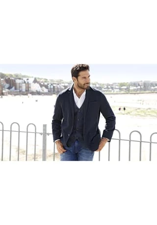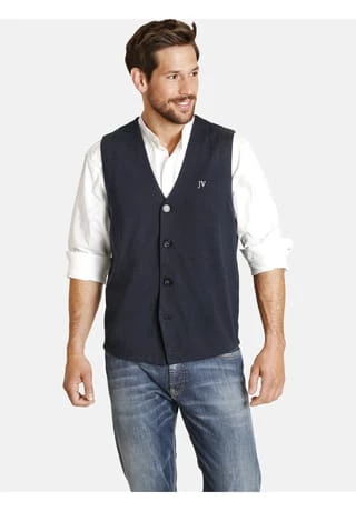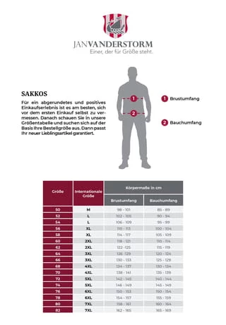 JAN VANDERSTORM ist Ihr Experte für Herrenmode in großen Größen. Duo der Extraklasse: 2-teiliges Set HOLMSTEIN bestehend aus Jersey-Sakko und passender Weste. Im modernen zweifarbigen Design. Passt zu jeder Gelegenheit und ist durch den speziellen Material-Mix sehr bequem zu tragen. Sakko mit Kontrasteinsatz am Unterkragen. Zwei aufgesetzte Taschen und eine Brusttasche mit Futter in Kontrastfarbe, das gerne als Einstecktuch dienen kann. Weste mit vier Knöpfen vorne und JV-Logo Stick in Kontrastgarn an der Brust. 70% Polyester, 30% Viskose. Maschinenwäsche.