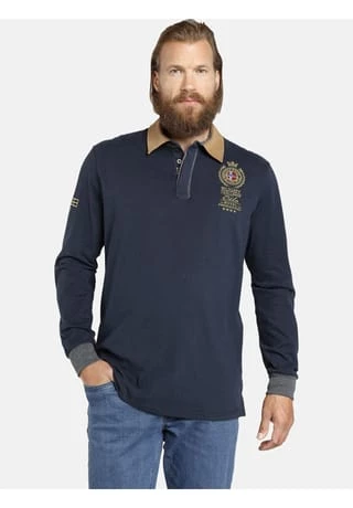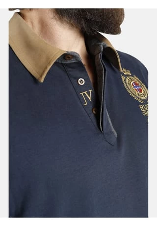 JAN VANDERSTORM ist Ihr Experte für Herrenmode in großen Größen. Rugby-Sweatshirt JAARNE im Statement-Design: Modern, zeitgeistig und absolut männlich. Schon der angesetzte Kragen ist aufwändig verarbeitet und punktet mit vielen Details. Die Unterseite des Kragens ist in Kontrastfarbe gehalten. Das Krageninnere ist ebenfalls mit Kontrastmaterial ausgekleidet. Das JV-Label ist auf die Unterseite der Knopfleiste gestickt. Die Knöpfe auf der 3-fach Knopfleiste sind in Hornoptik gehalten. Auf Brusthöhe befindet sich eine aufwändige Rugby-Stickerei. Hochwertige JV-Stickereien auf einem Ärmel zeigen die Liebe zum Detail. Die Ellenbogen Patches in Kontrastfarbe runden den College-Look ab. Das Sweatshirt bringt durch Seitenschlitze eine sehr gute Passform mit. Der Saum ist gerade geschnitten. Flexible Bündchen schließen die Ärmelenden ab. Ein Shirt, das sich zu vielen Gelegenheiten tragen lässt und in dem man sich wohlfühlen kann. Der perfekte Style zu modernen Jeans oder farbigen Chinos. Aus leichtem Baumwoll-Jersey. Aus 100% Baumwolle. Maschinenwäsche.