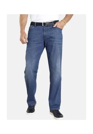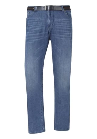 JAN VANDERSTORM ist Ihr Experte für Herrenmode in großen Größen. Bequeme Jeans gibt es auch für Kerle mit starker Statur. Jeans JOEL gehört in zwei Sortimente: zur blue Jeans und zu den Unterbauchhosen. Der Used-Effekt verleiht der Jeans ihren verwegenen Stil. Unterbauchschnitt bedeutet: der Bund sitzt vorne ein wenig tiefer und hinten etwas höher, als bei gewöhnlichen Jeans. Sie schließt unter dem Bauch und Hemden bleiben wo sie hin gehören. Mit diesem extra Schnitt bekommen Sie den kernigen Look einer Jeans und Bewegungsfreiheit, wo Sie es brauchen. Den passenden Gürtel liefern wir gleich mit dazu. 98% Baumwolle, 2% Elasthan. Maschinenwäsche. +FIT ARTIKEL: Bequemer Style aus unserer +Fit Kollektion. Mit unserem +Tiefbund Spezialschnitt sitzt diese Hose vorn bequem unter dem Bauch und verhindert durch ein höher geschnittenes Rückteil ein Herausrutschen des Oberteils. Unser +Kurzgröße Spezialschnitt verfügt über eine angepasste Bundweite bei steigender Konfektionsgröße. Die Leibhöhe und die Reißverschlussleiste sind verkürzt geschnitten und sorgen so für eine perfekte Passform für Männer mit kürzeren Beinen.