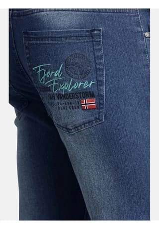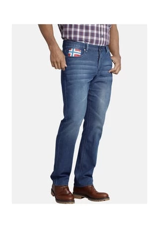 JAN VANDERSTORM ist Ihr Experte für Herrenmode in großen Größen. Die Tiefbundjeans SWINDBERT hat alles, was authentische Jeans brauchen: die typische Five-Pocket-Form und die angesagte Stonewashed-Optik. Bei JAN VANDERSTORM kommen immer noch ein paar Hingucker-Details dazu. Hier sind das die aufgedruckte Norwegenflagge an der Tickettasche vorn und die Stick- und Druckmotive an einer der aufgesetzten Gesäßtaschen. Übrigens: Jeans sind heute viel elastischer als früher. Wir bei JAN VANDERSTORM finden das super. Sie bestimmt auch, oder? 70% Baumwolle, 28% Polyester, 2% Elasthan. Maschinenwäsche. +FIT ARTIKEL: Bequemer Style aus unserer +Fit Kollektion. Mit unserem +Tiefbund Spezialschnitt sitzt diese Hose vorn bequem unter dem Bauch und verhindert durch ein höher geschnittenes Rückteil ein Herausrutschen des Oberteils. Unser +Kurzgröße Spezialschnitt verfügt über eine angepasste Bundweite bei steigender Konfektionsgröße. Die Leibhöhe und die Reißverschlussleiste sind verkürzt geschnitten und sorgen so für eine perfekte Passform für Männer mit kürzeren Beinen.