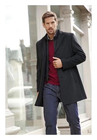 JAN VANDERSTORM ist Ihr Experte für Herrenmode in großen Größen. Nobel in die Übergangszeit: Wollmantel UNSKA mit abtrennbaren Windfang ist das Highlight in der beginnenden Herbstsaison. Der Einsatz mit gerippten Kragen und gesteppter Front verleiht dem Mantel einen sportlichen Eindruck. Abgetrennt kommt ein klassischer Wollmantel mit Revers zum Vorschein. Mit Knöpfen zu schließen. Ein Mantel mit Stil. 50% Wolle, 40% Polyester, 10% andere Fasern. Futter: 100% Polyester.