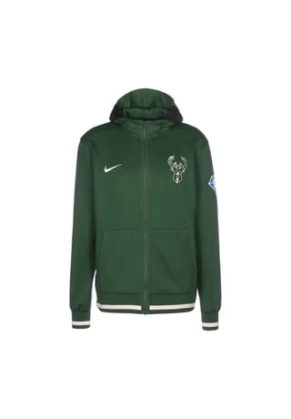 Die NBA Milwaukee Bucks Showtime Trainingsjacke für Herren aus dem Hause Nike präsentiert dein Lieblingsverein in Perfektion. Der reguläre Schnitt und das weiche Polyestermaterial schmiegen sich angenehm an deine Haut. Eine hochabschließende Kapuze und die praktischen Taschen sorgen für Schutz und Stauraum. Bequeme Bündchen tragen zum Komfort bei. Das Bucks-Logo, sowie der Swoosh auf der Brust und der große Milwaukee-Schriftzug auf dem Rücken machen diese Jacke erst komplett!