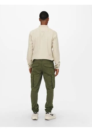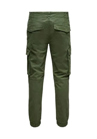 Cargohose mit Taschen an den Beinen Frontverschluss Guertelschlaufen Seitentaschen Elastische gerippte Buendchen Dehnbarer Stoff Schritthoehe: 78 cm in Groesse 32/32 Das Model traegt Groesse 32/32