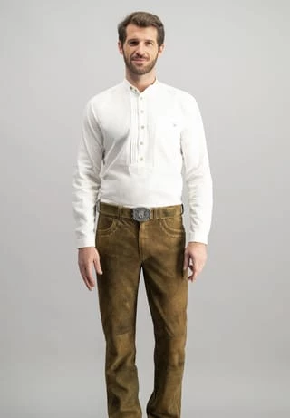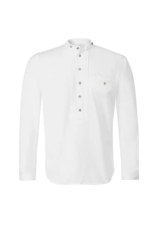 Trachtenhemd Renus von Stockerpoint Classics in weiß. Das klassische Pfoadhemd aus hochwertiger Baumwoll-Qualität ist die perfekte Ergänzung zum traditionellen Trachtenoutfit. Dieses klassische Modell mit dezentem Stehkragen und Biesen passt perfekt zu deiner Lieblingshose und ist unentbehrlich als Kombipartner zu unseren Trachtenwesten und Trachtensakkos. Das Modell ist in „Comfort Fit“ geschnitten und passt sich jeder Körperform perfekt an. Die trachtigen Hornknöpfe verleihen eine besondere Note und runden das Gesamtbild gekonnt ab.