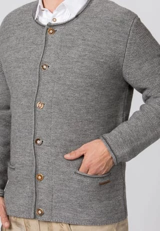 Trachten-Strickjacke Amaro von Stockerpoint Classics. Die Strickjacke wird aus einer feinen Wollmischung gefertigt und hat einen besonders weichen Griff. Eine sehr hochwertige Verarbeitung und die trendige Linksstrick-Optik prägen das trachtige Design. Die klassische, gerade Schnittführung mit einem Rundhalsausschnitt garantiert eine sehr gute Passform und einen angenehmen Tragekomfort. Passende Hornknöpfe setzten sich gekonnt in Szene und geben ihr den traditionellen Touch. Der Trachtenjanker ist ein absoluter Klassiker und guter Kombipartner zur Lederhose.